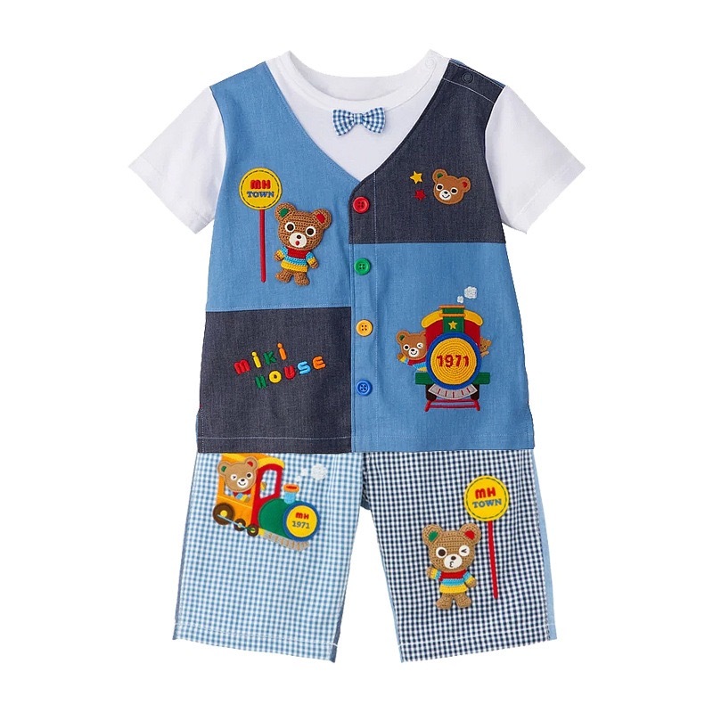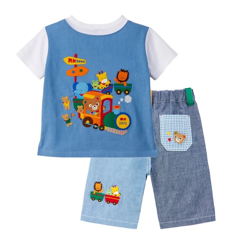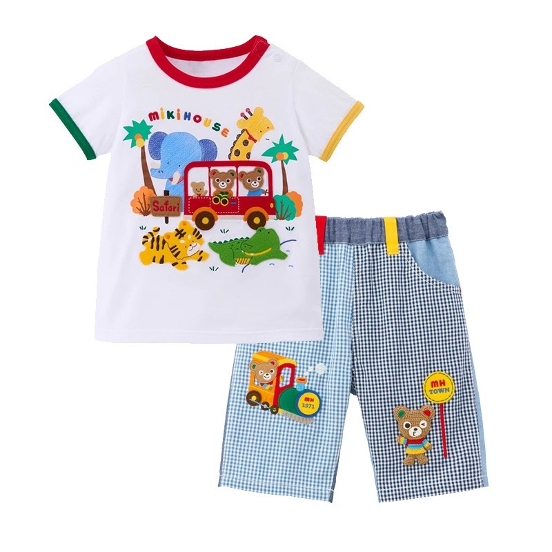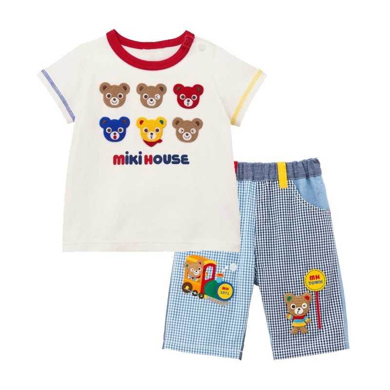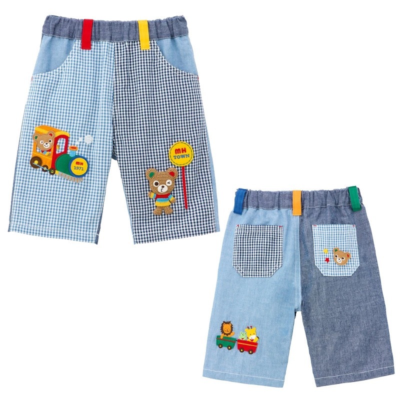 🐻𝐌𝐢𝐤𝐢 𝐇𝐨𝐮𝐬𝐞 小熊火車刺繡格仔六分褲