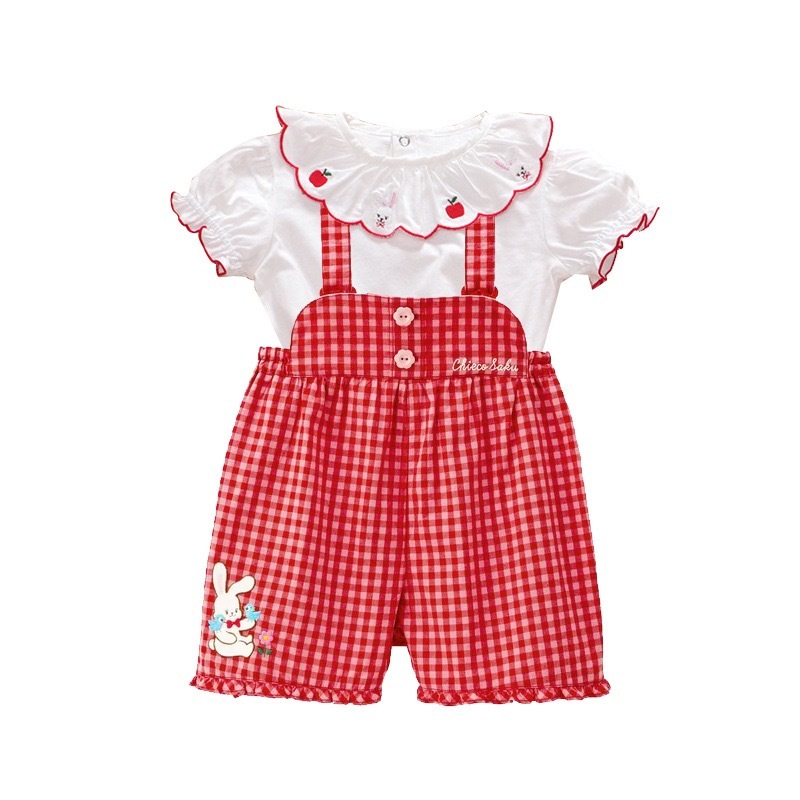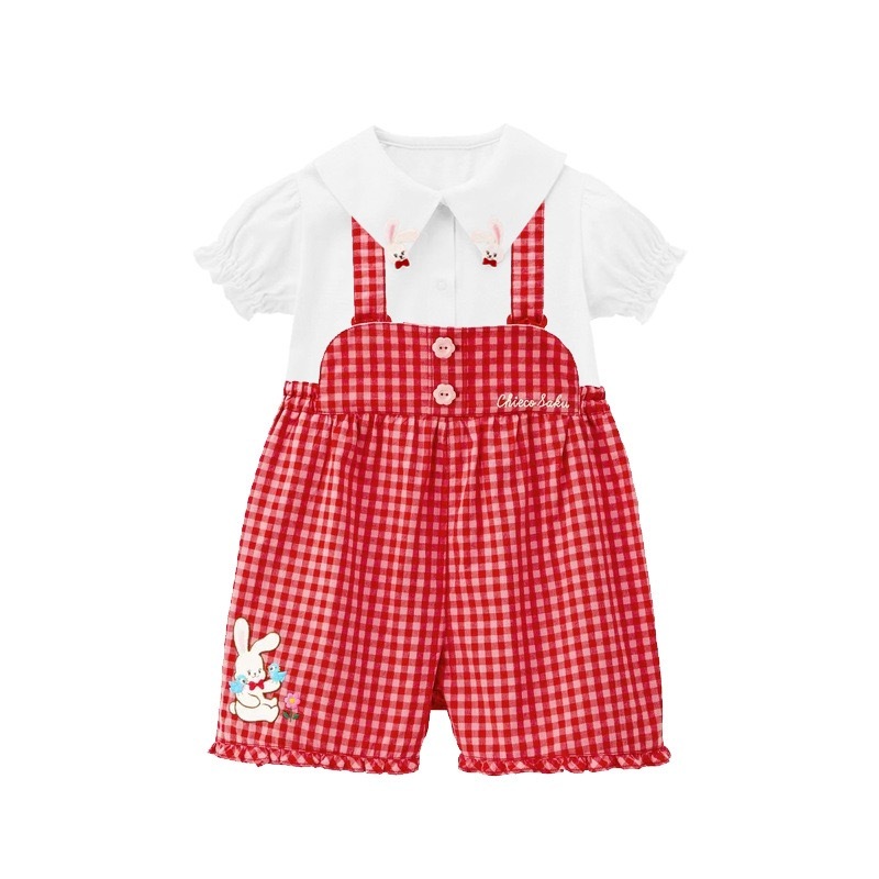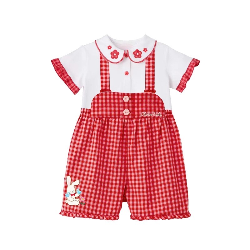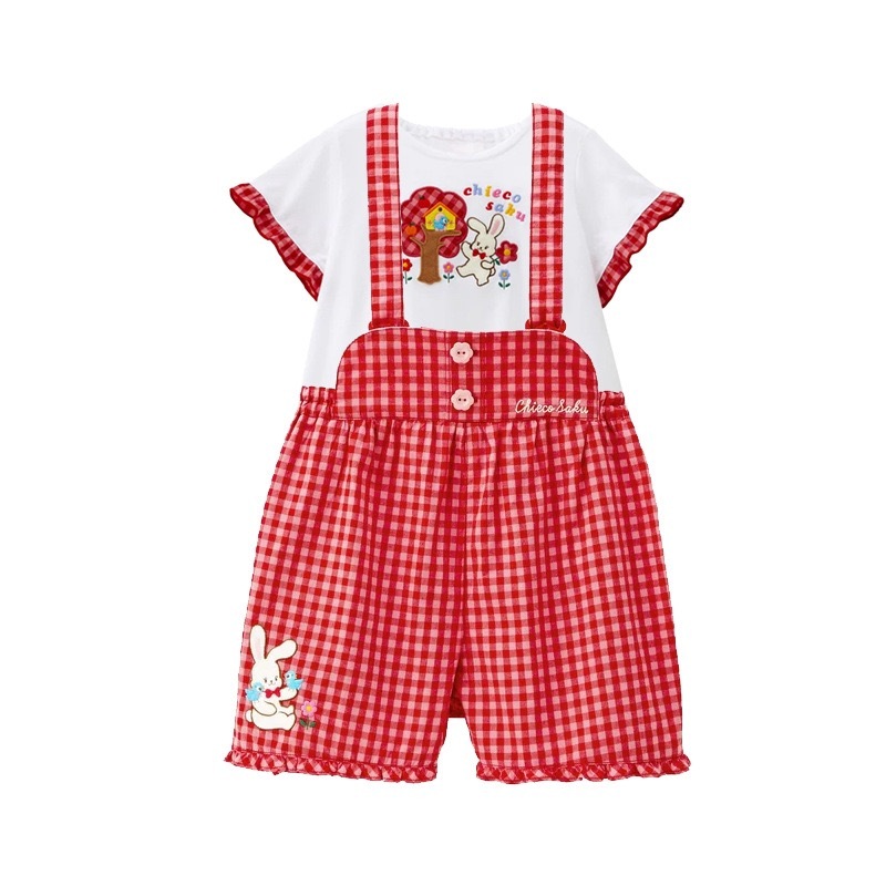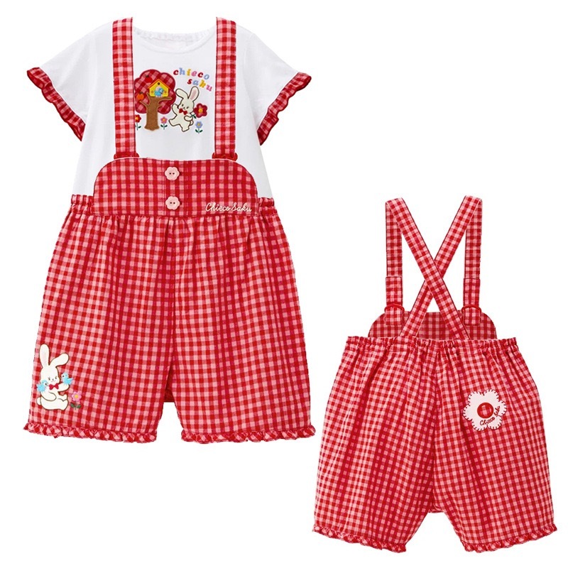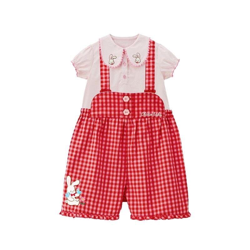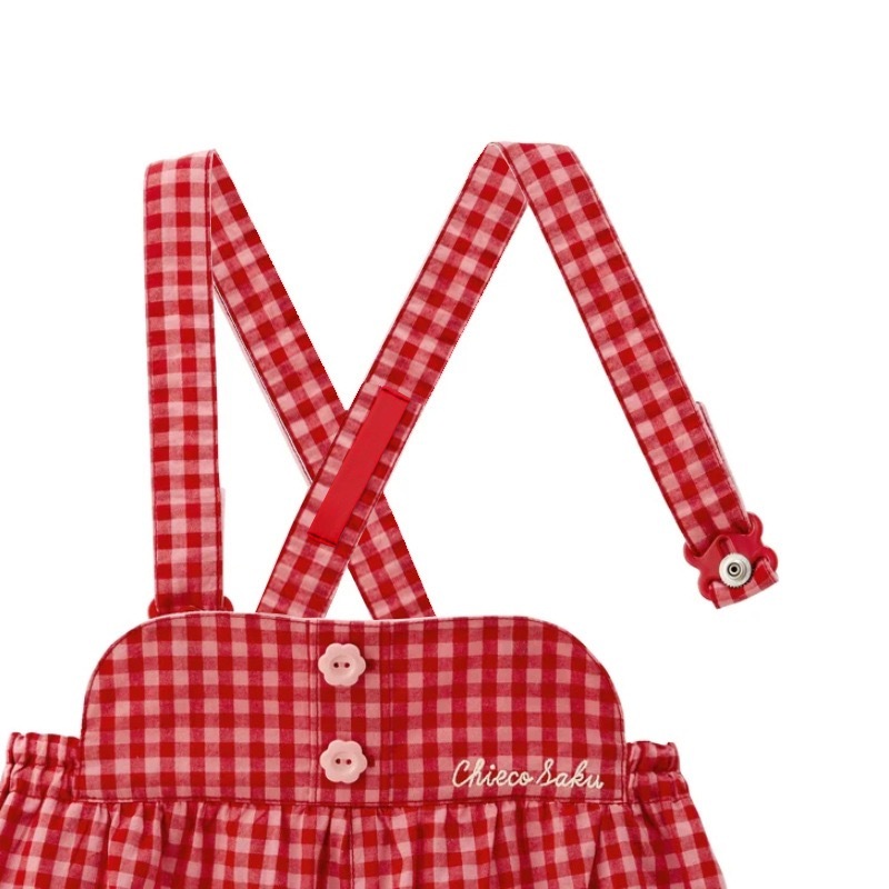 🐰𝐌𝐢𝐤𝐢 𝐇𝐨𝐮𝐬𝐞 小兔花花刺繡格仔背帶褲