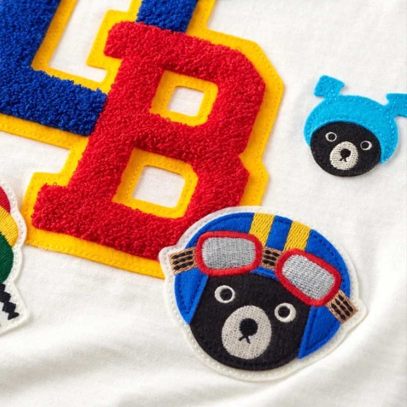 🐻𝐌𝐢𝐤𝐢 𝐇𝐨𝐮𝐬𝐞 面具熊徽章刺繡短袖上衣