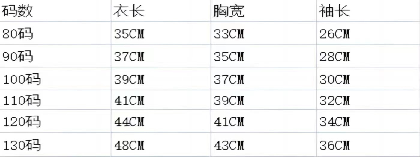 尺寸表(cm):