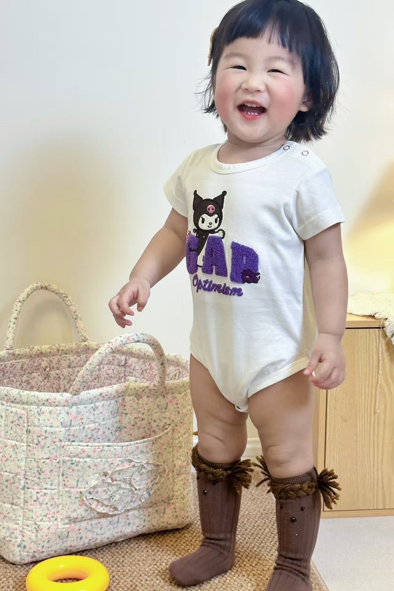 𝐆𝐀𝐏 𝐱 𝐒𝐚𝐧𝐫𝐢𝐨 夏日人物短袖套裝/包屁衣上衣