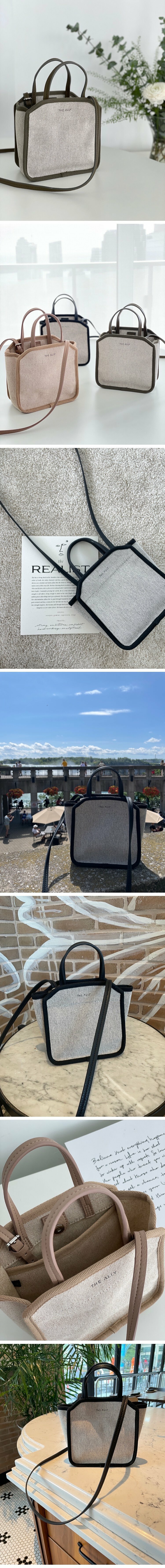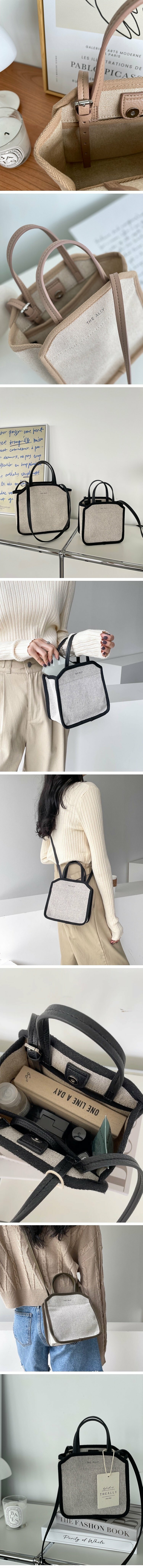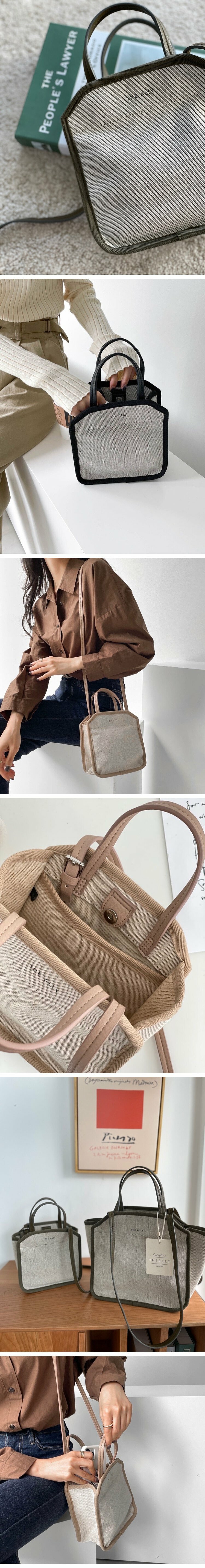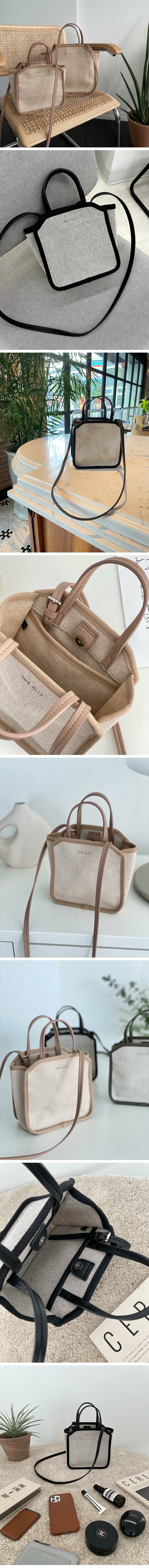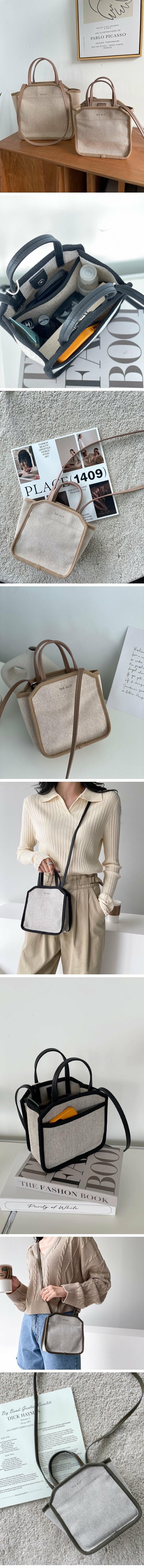韓國熱門的帆布拼皮質手袋,內有實用間格