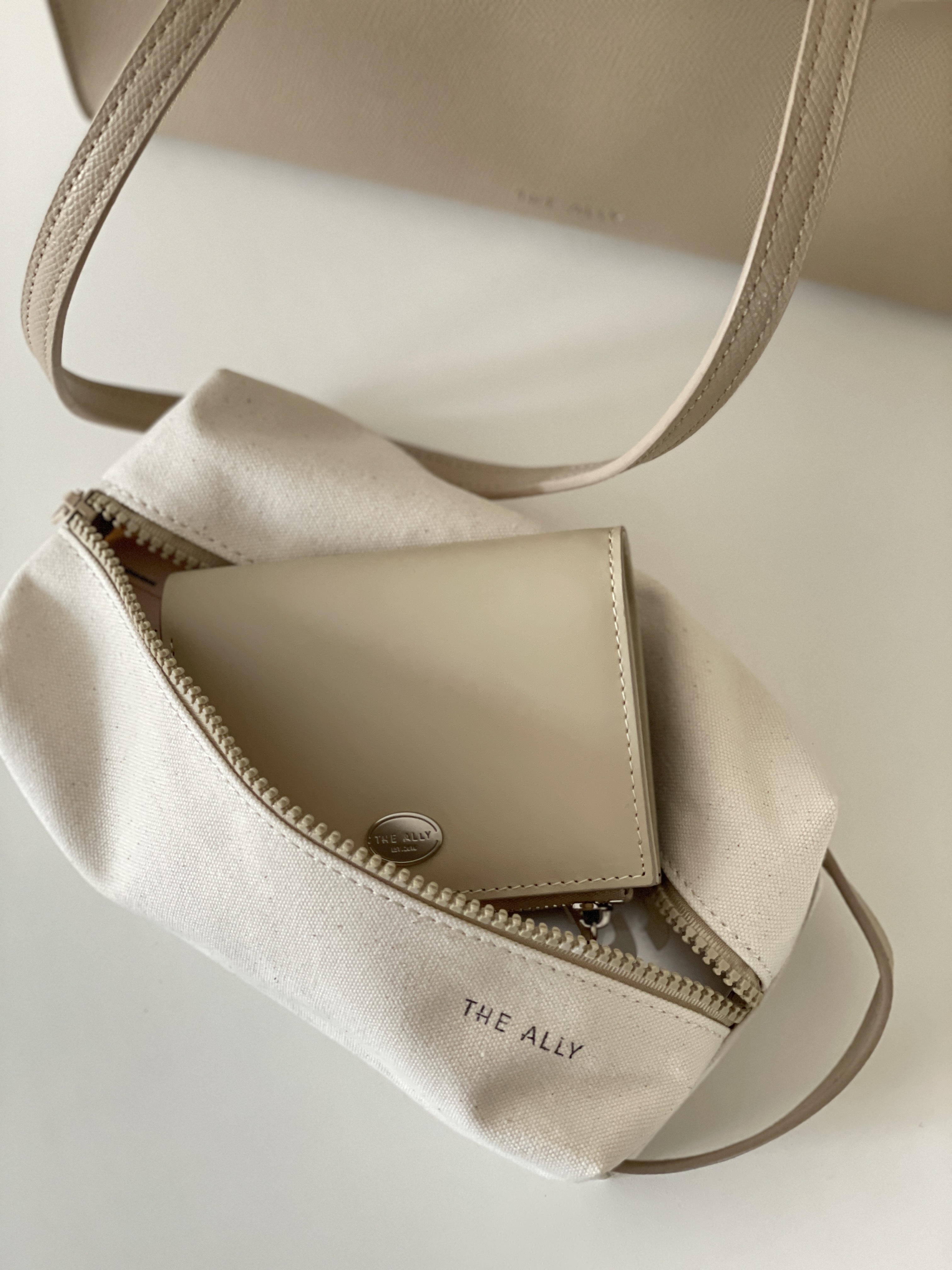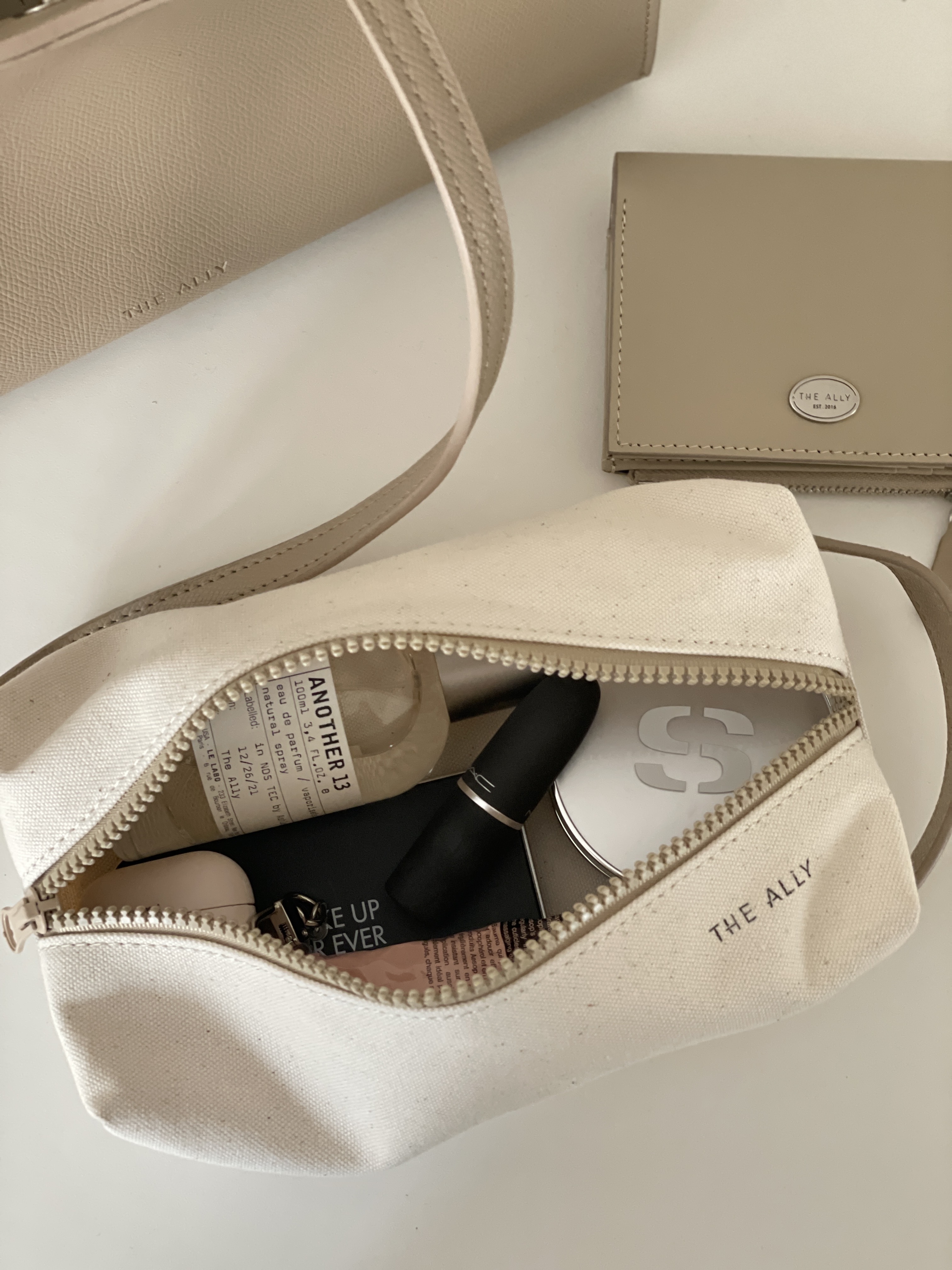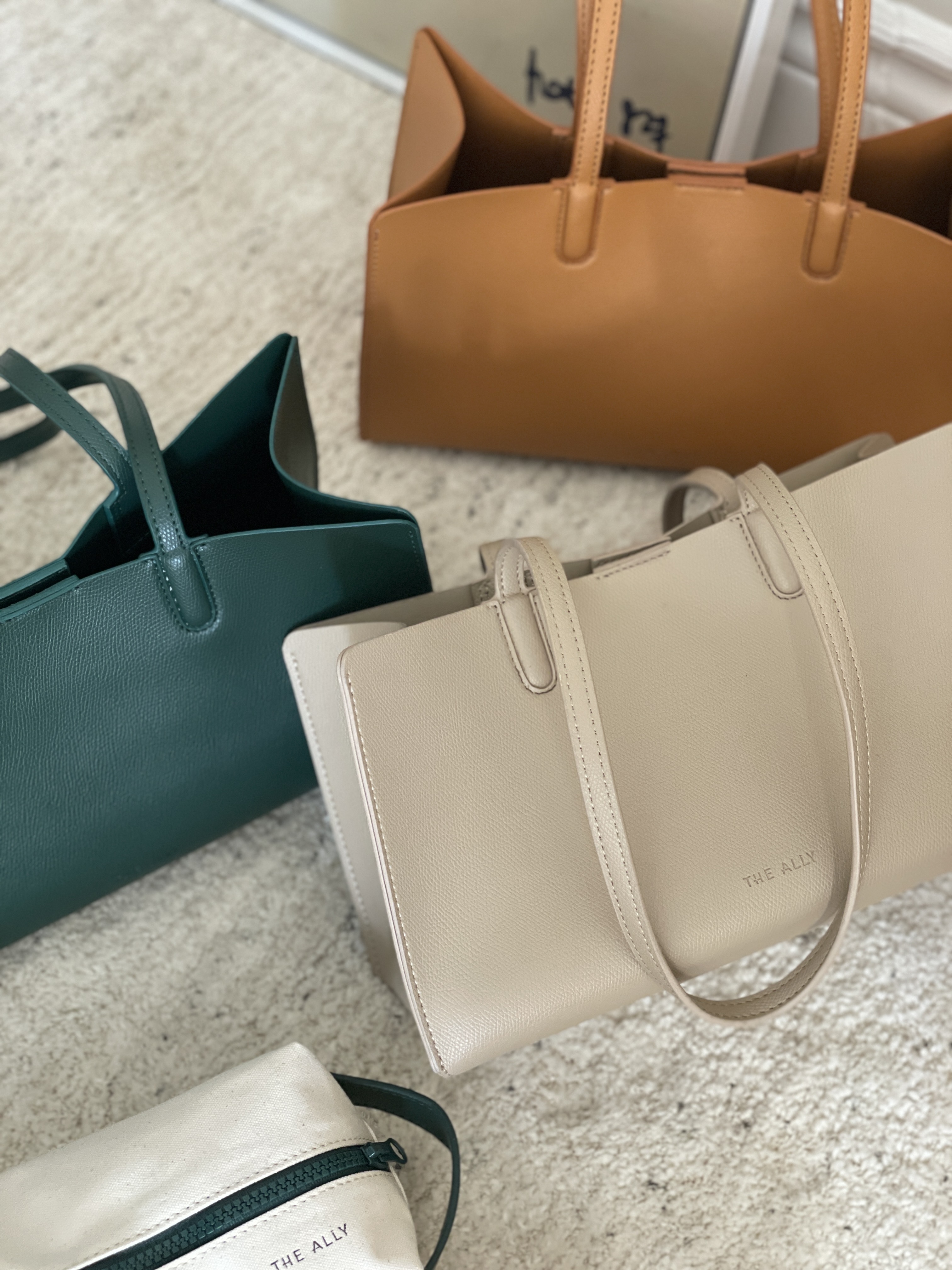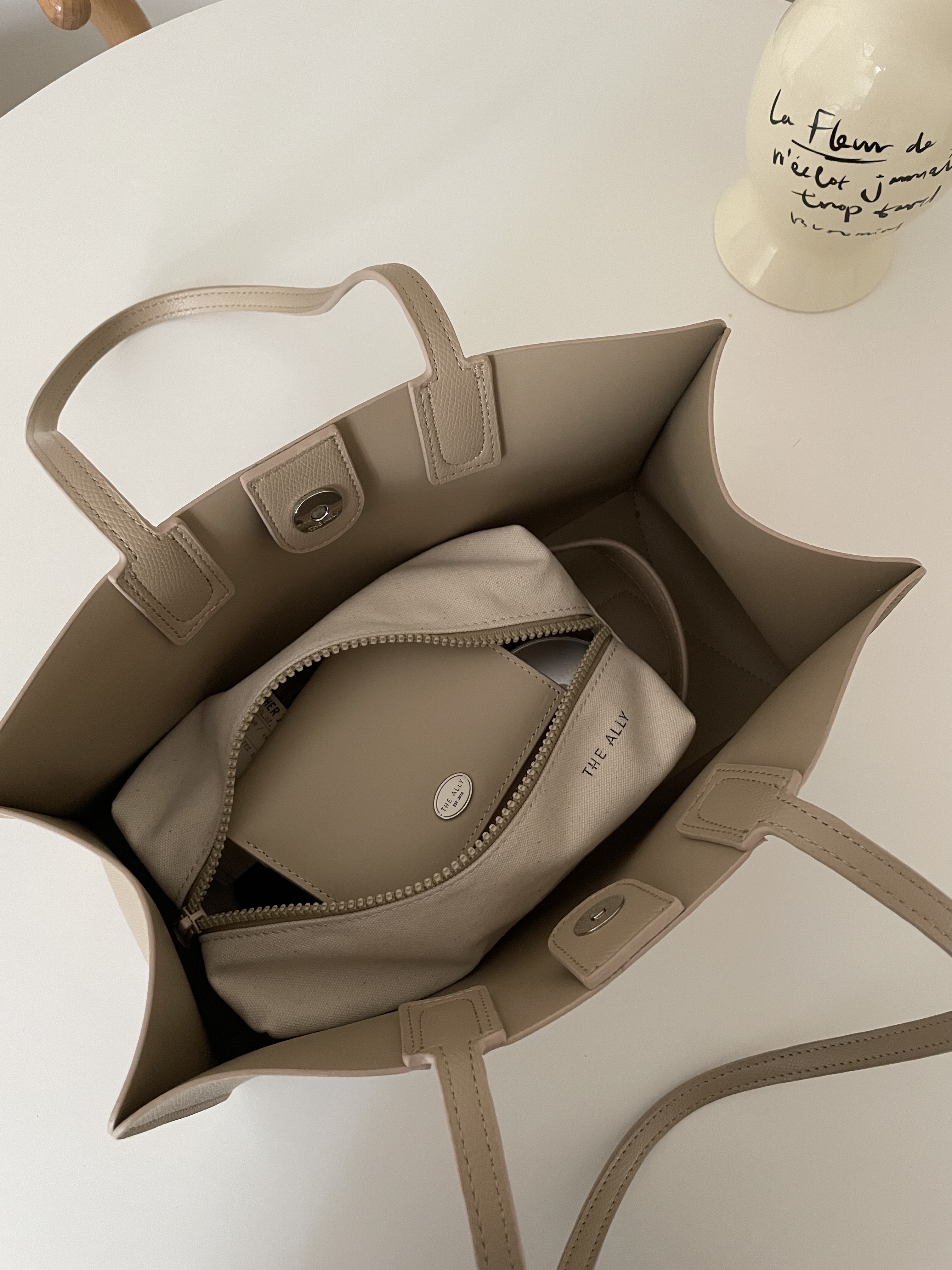 韓國熱門的帆布拼皮質手袋,內有實用間格